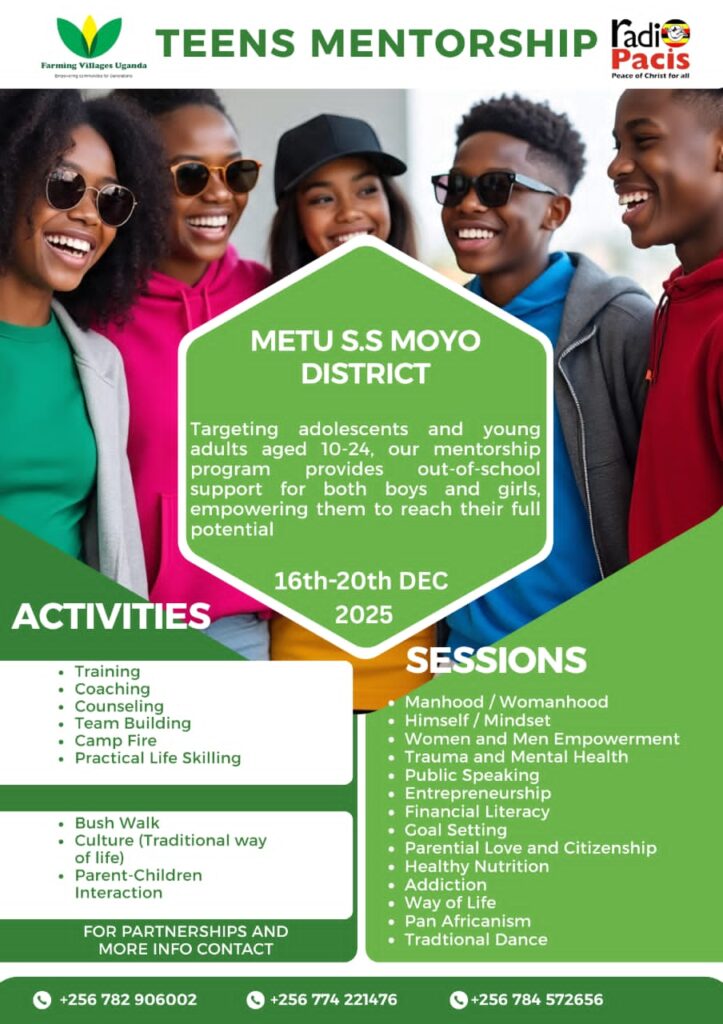 Farming Villages Uganda, in collaboration with Radio Pacis, is excited to announce a transformative Teens Mentorship Program taking place from 16th to 20th December 2025.